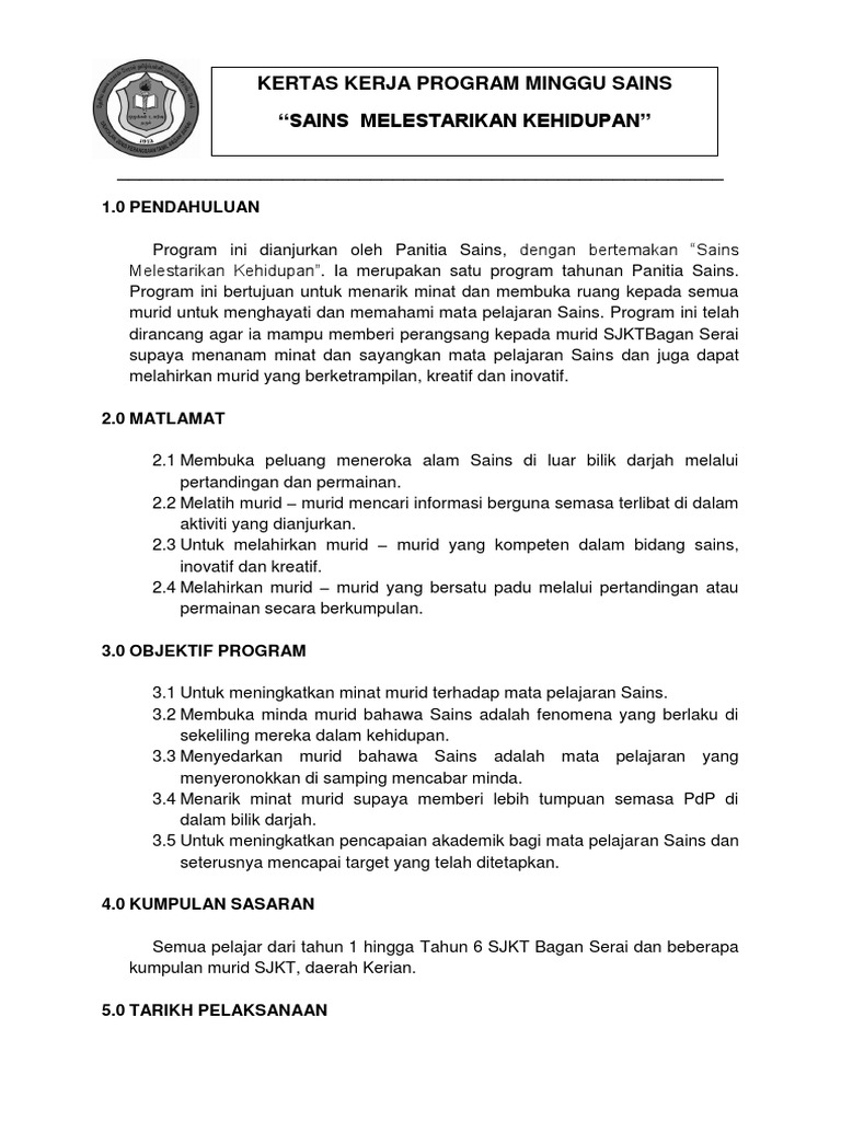 Kertas kerja minggu sn. Up to 3 cash back KERTAS KERJA CADANGAN MINGGU MATEMATIK DAN SAINS. Mezenahpeli8 menerbitkan KERTAS KERJA MINGGU PANITIA SAINS 2021.