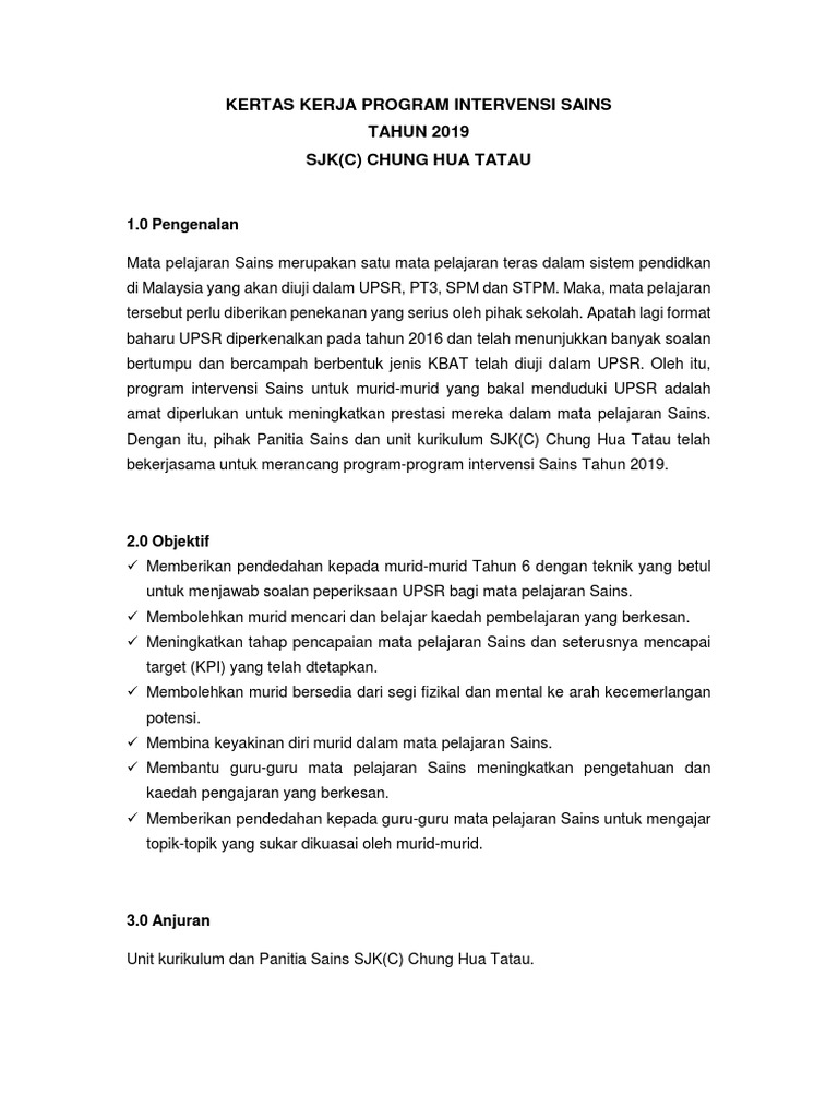 Kertas Kerja Program Intervensi Sains 2019 Pdf